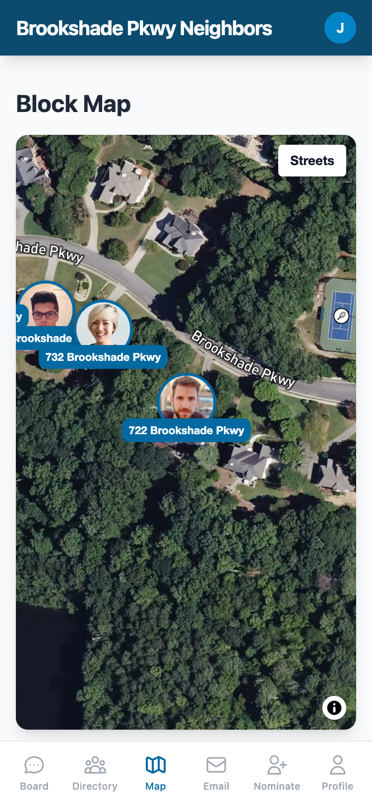 A private space built for one street. Message board, neighbor directory, satellite map, email blasts — everything stays between you and your neighbors.